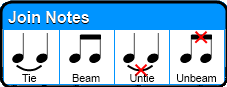 Similarly, to untie or unbeam notes, use the touch/drag function to highlight them in orange and choose the "Untie" or "Unbeam" menu options when prompted.