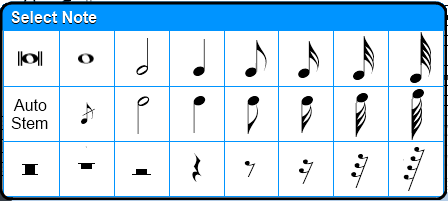 When selecting notes (see above) the Auto Stem button can be used to enable or disable automatic stem directions. Use this option to have the stem direction automatically determined based on the note position after it is dragged into the song. This button lights up when active.