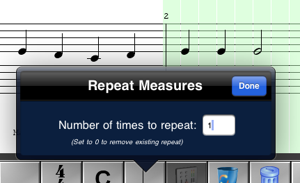 4. Touch "Done" to confirm the repeat count. The measures will now be