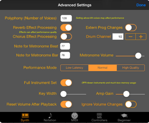 quality, especially on the iPad 2, so it is recommended this option only be active if the Polyphony