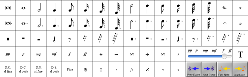 Note that not all symbols currently result in MIDI output and are purely for adornment at this time. "Active" symbols are discussed below - scroll this page down to see more details.