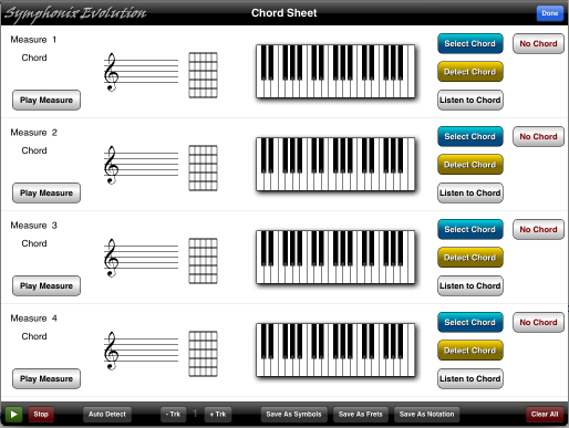 Auto Detect - Press this button to analyze the song and provide suggested chords for each measure.